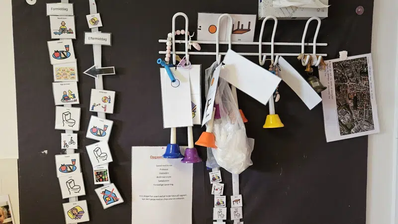 - Kommunikationsformer: PECS (billedkommunikation), tegn-til-tale, konkreter